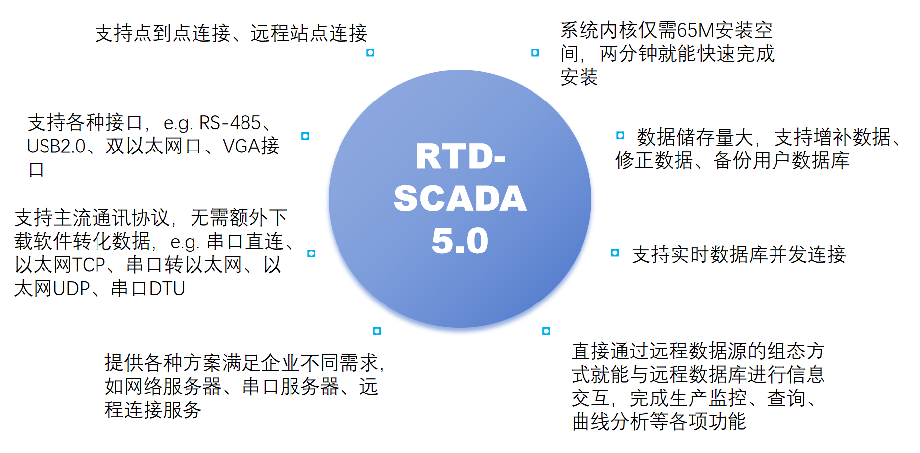 ? 首創(chuàng)快速批量兼并發(fā)通訊模式 世界五百強-S公司SCADA產(chǎn)品只支持單線通訊模式,RTD-SCADA第五代支持并發(fā)通訊、批量通訊→性能與準(zhǔn)確性大大提升