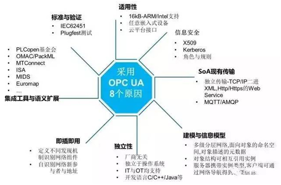 為結(jié)合OPC UA的標(biāo)準(zhǔn)文檔,自行設(shè)計的圖用于闡述采用OPC UA的八個原因。