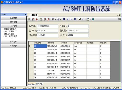 3、系統(tǒng)自動(dòng)記錄上料過程信息,檢查過程動(dòng)作,抽查過程,換料過程等信息。