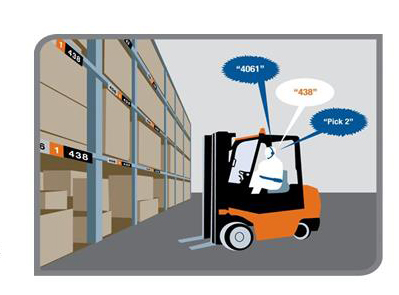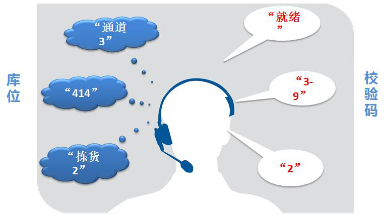結(jié)合視覺顯示的揀選信息,以聲音的方式告知使用者去指定的庫(kù)位進(jìn)行揀選。