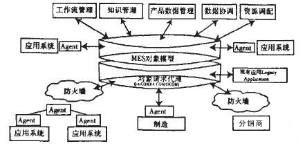 從模型中可看出,在面向?qū)ο蟮膽?yīng)用中,每個(gè)對(duì)象都使用自身具有的功能和方法來(lái)操作數(shù)據(jù),分別完成系統(tǒng)的各種功能。而其它功能如:工作流管理,產(chǎn)品數(shù)據(jù)管理,知識(shí)管理等都從功能邏輯中分離出來(lái)。通過(guò)對(duì)象請(qǐng)求代理(ORB)(如CORBA,COM/DCOM)可使不同軟件商的對(duì)象相互交換信息和進(jìn)行互操。NIIIP/SMART所描述的MES技術(shù)模型非常適合未來(lái)MES的商業(yè)應(yīng)用特征,一個(gè)分布式對(duì)象框架可以讓各種數(shù)據(jù)和功能邏輯在使用時(shí)變得更加緊密。而且,通過(guò)使用小巧簡(jiǎn)練的對(duì)象,可使系統(tǒng)模型在不破壞相互關(guān)系的情況下方便地進(jìn)行客戶(hù)化定義。這些特征使實(shí)施的MES費(fèi)用較低同時(shí)又具有良好的適應(yīng)性和柔性。隨著計(jì)算機(jī)技術(shù)的發(fā)展,越來(lái)越多的MES、ERP、控制系統(tǒng)、產(chǎn)品數(shù)據(jù)管理、供應(yīng)鏈管理和客戶(hù)關(guān)系管理都是以對(duì)象的方式來(lái)編寫(xiě)代碼的。只要它們遵守統(tǒng)一的ORB,不管它們哪個(gè)開(kāi)發(fā)商提供,都可以進(jìn)行無(wú)縫地集成?,F(xiàn)有的應(yīng)用系統(tǒng)只要按正確的方法進(jìn)行封裝也同樣能實(shí)現(xiàn)系統(tǒng)的即插即用。通過(guò)引入智能代理可以有效地實(shí)現(xiàn)分布式MES的協(xié)同工作,滿(mǎn)足虛擬企業(yè)中MES應(yīng)用的要求。從而實(shí)現(xiàn)敏捷制造模式對(duì)信息系統(tǒng)的要求,即系統(tǒng)的可重構(gòu),可重用和可擴(kuò)展特性。
