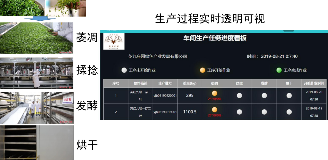 公司基于近十年茶產(chǎn)業(yè)實(shí)踐,借助供給側(cè)改革提供的發(fā)展契機(jī),用現(xiàn)代工業(yè)思維,順應(yīng)現(xiàn)代商業(yè)要求,大膽進(jìn)行變革實(shí)踐,以科技為支撐,標(biāo)準(zhǔn)化為切入點(diǎn),以標(biāo)準(zhǔn)化、規(guī)?;?、品牌化運(yùn)營為切入點(diǎn),成功研發(fā)了全國第一條“英紅九號紅條茶智能化生產(chǎn)線”——英九莊園中央智能茶廠,率先實(shí)現(xiàn)紅條茶全程連續(xù)化、自動化和清潔化生產(chǎn),并以智能化為節(jié)點(diǎn),聯(lián)合上下游,實(shí)現(xiàn)全產(chǎn)業(yè)鏈數(shù)字化,讓傳統(tǒng)茶產(chǎn)業(yè)在產(chǎn)業(yè)互聯(lián)網(wǎng)的助推下迭變。