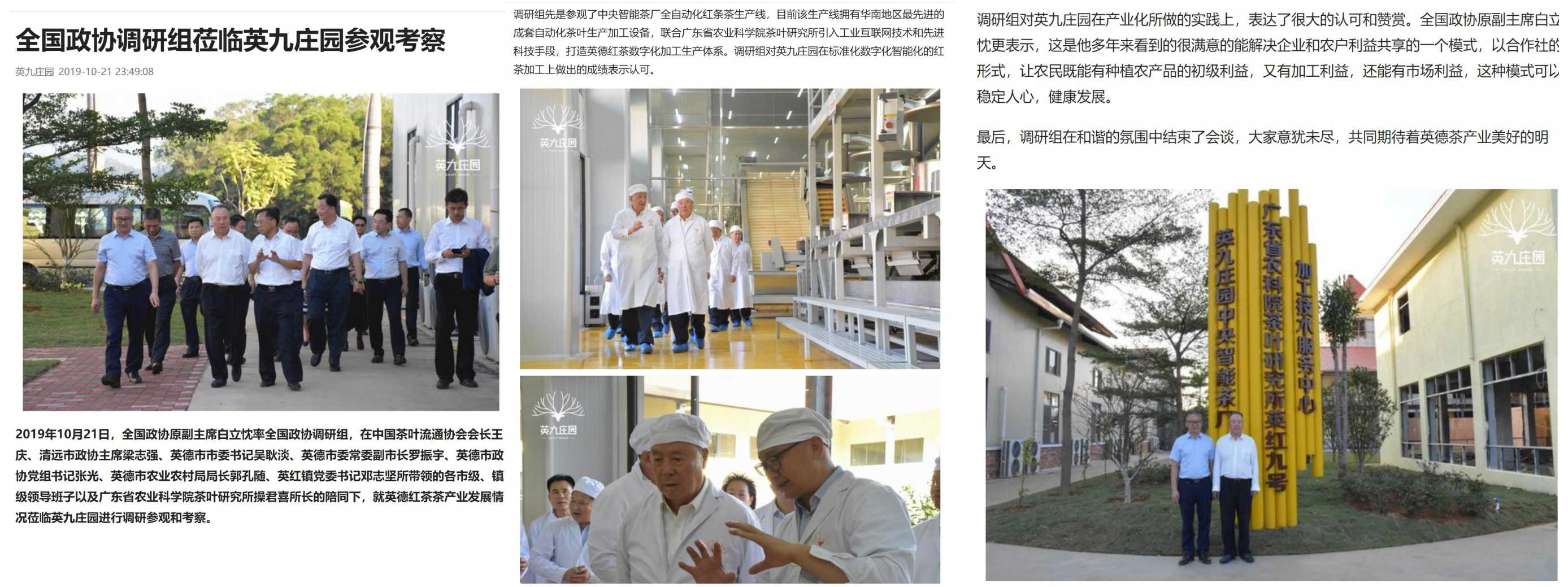 廣東英九莊園綠色產(chǎn)業(yè)發(fā)展有限公司是一家致力于中國紅茶產(chǎn)業(yè)化發(fā)展的高科技企業(yè),總部位于清遠(yuǎn)市英德市英紅鎮(zhèn),占地3000余畝,預(yù)期投資8億元,公司擁有發(fā)明專利、實(shí)用新型專利等十幾項(xiàng)。