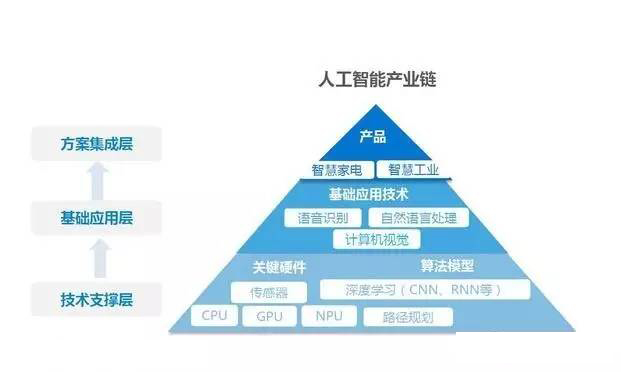從人工智能自身的產(chǎn)業(yè)鏈來(lái)看,人工智能可以分成技術(shù)支撐層、基礎(chǔ)應(yīng)用層和產(chǎn)品層。