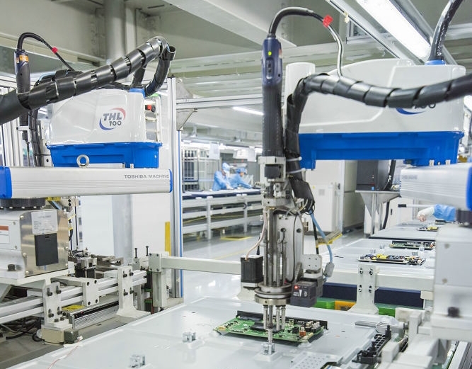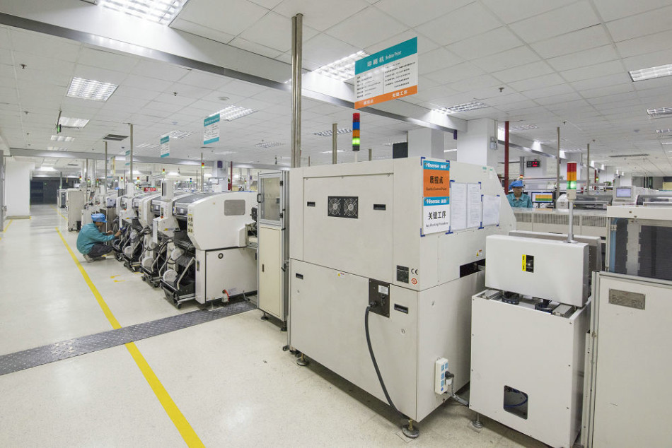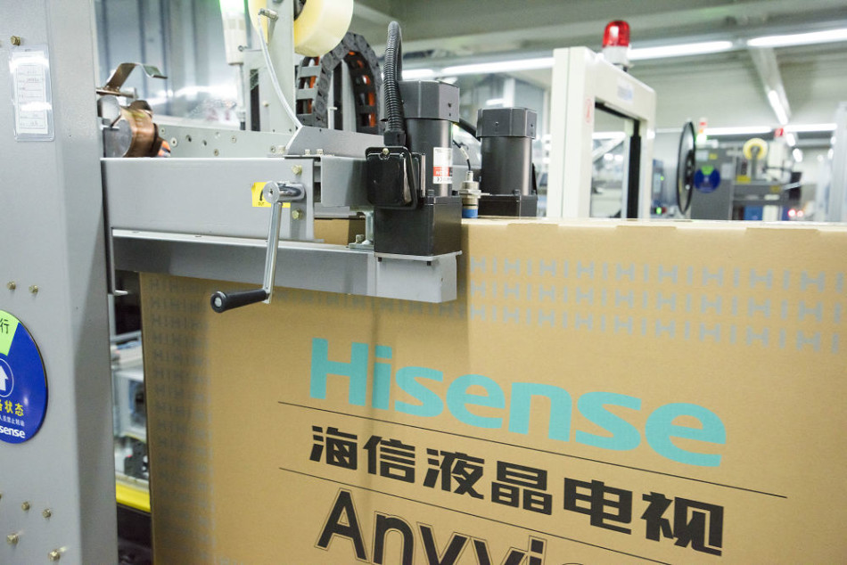 在海信電視智能工廠里,AGV小車來回穿梭于庫房與線體間,機器人、機械手和自動化專機正有條不紊地實現(xiàn)產(chǎn)品的裝配、檢測、包裝,成品經(jīng)自動分揀、碼垛、覆膜后,由AGV自動運送到指定的貨位……整個過程精準(zhǔn)而高效。下面一起觀摩: