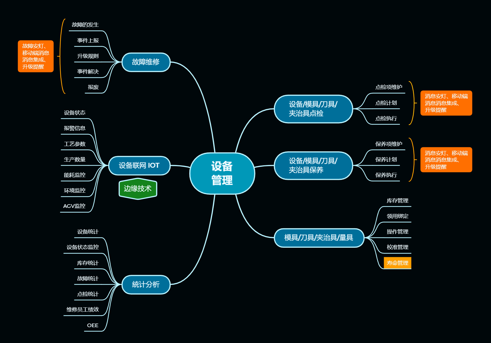 實(shí)現(xiàn)對設(shè)備全生命周期的檔案(臺賬) 、保養(yǎng)維護(hù)等管理和關(guān)鍵部件的壽命管理,Input/Output參數(shù)自動采集與檢查、重要參數(shù)閉環(huán)控制,設(shè)備換型管理、點(diǎn)檢管理等。